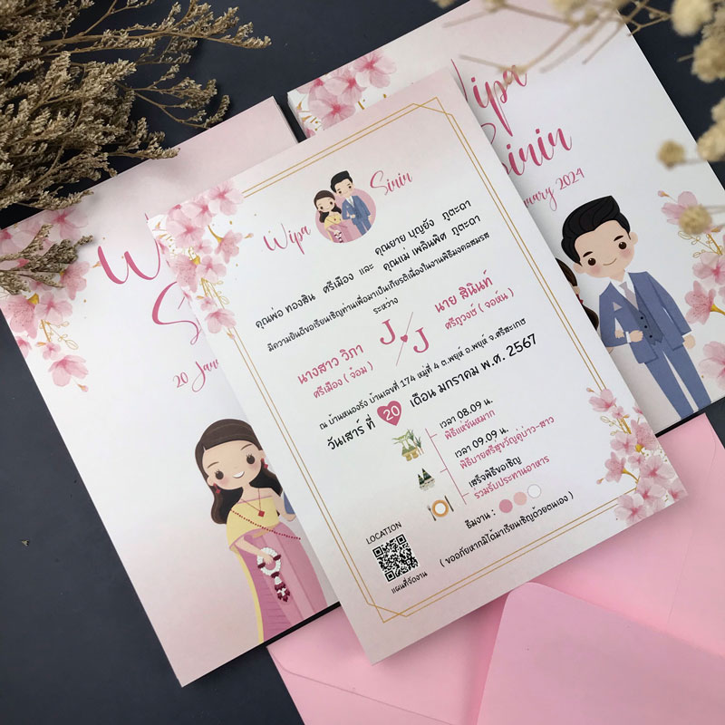 การ์ดแต่งงาน การ์ดงานแต่ง การ์ดแต่งงานมินิมอล การ์ดแต่งงาน สีชมพู พร้อม ซองการ์ดแต่งงาน |