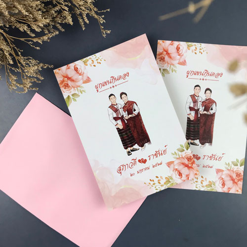 การ์ดแต่งงานสไตล์อีสาน “กินดอง” มาในดีไซน์มินิมอล เรียบง่าย แต่มีเอกลักษณ์ เหมาะสำหรับคู่บ่าวสาวที่อยากได้การ์ดแต่งงานโดดเด่นในธีมลูกทุ่งอีสาน โดยยังคงความทันสมัยและเข้ากับงานแต่งทุกสไตล์