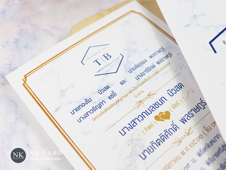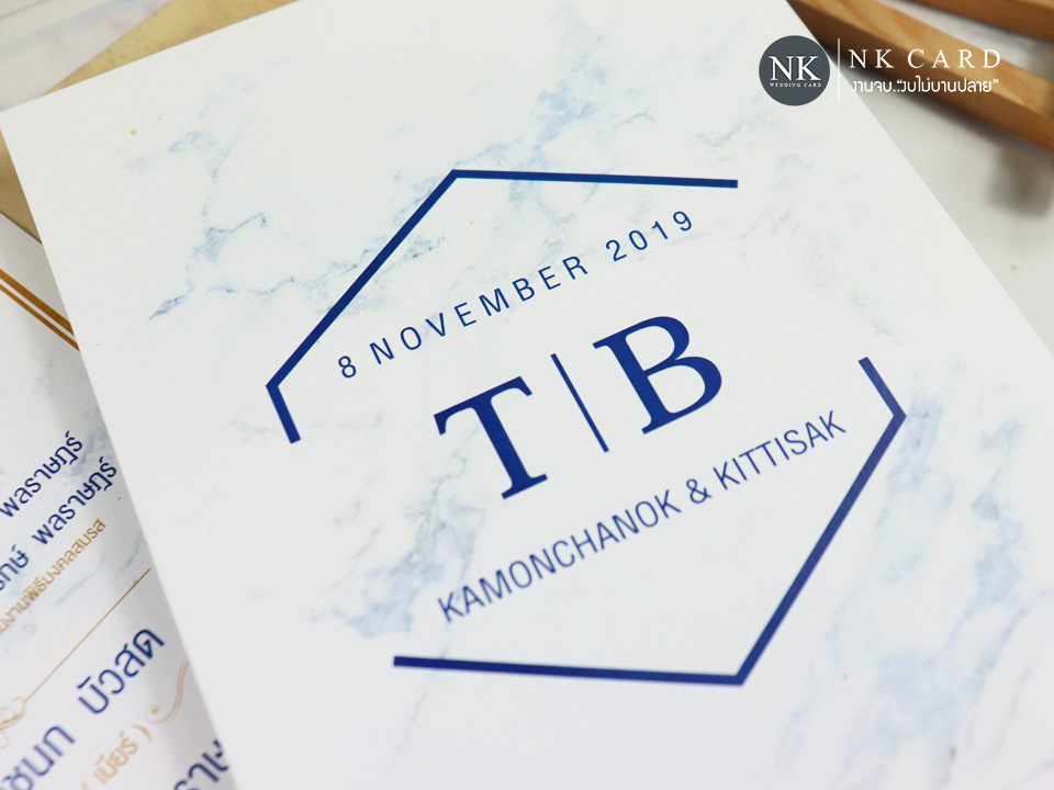 แบบการ์ดแต่งงาน การ์ดงานแต่ง การ์ดแต่งงานมินิมอล สไตล์เรียบๆ เน้นความมีระดับ ลายหินอ่อน | nk-การ์ดหกเหลี่ยม-พื้นหินอ่อน#1