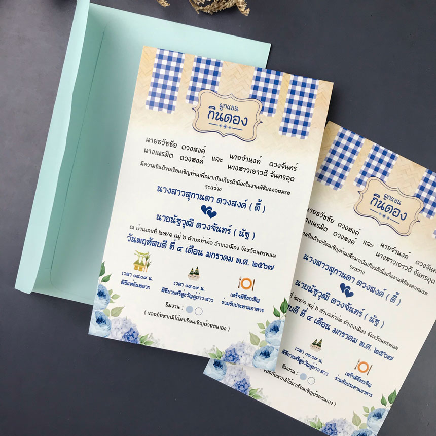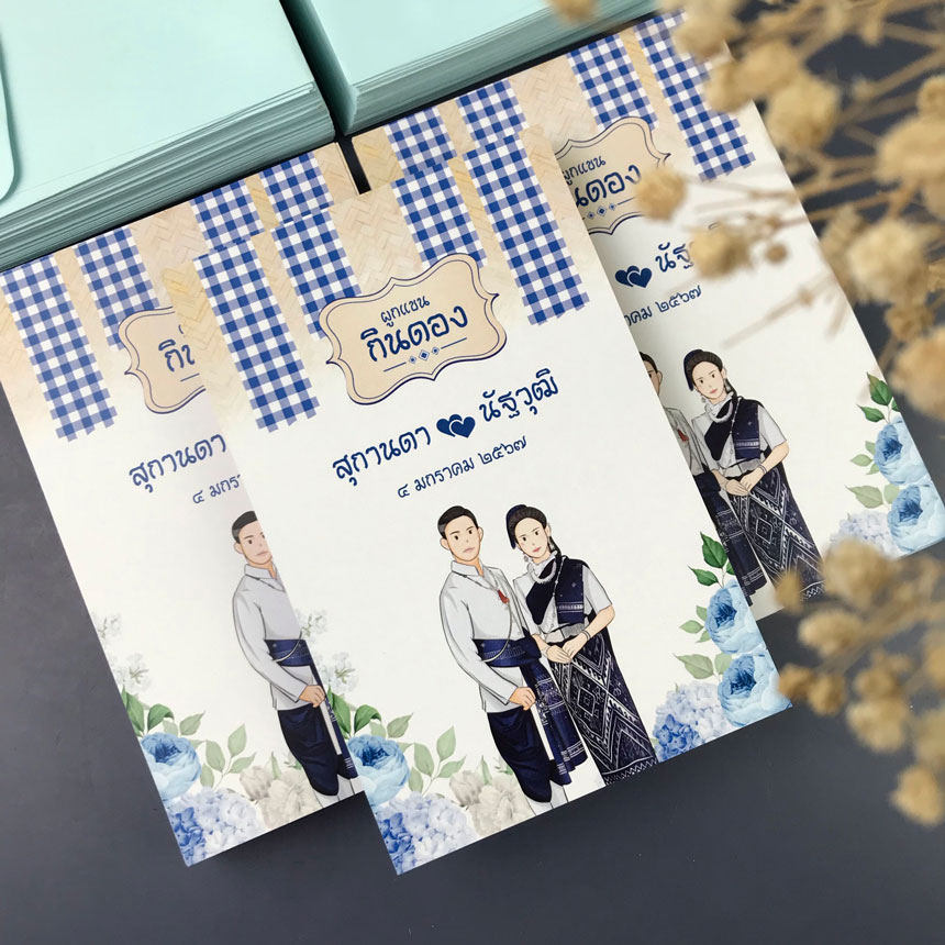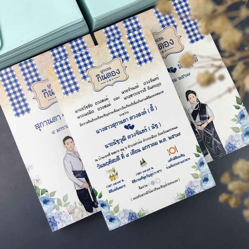การ์ดแต่งงานกินดอง อีสาน แบบการ์ดแต่งงาน การ์ดแต่งงาน การ์ดงานแต่ง การ์ดแต่งงานสีฟ้า |