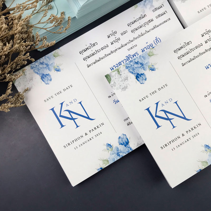 การ์ดแต่งงาน การ์ดงานแต่ง การ์ดแต่งงานมินิมอล การ์ดแต่งงาน สีฟ้า พร้อม ซองการ์ดแต่งงาน |