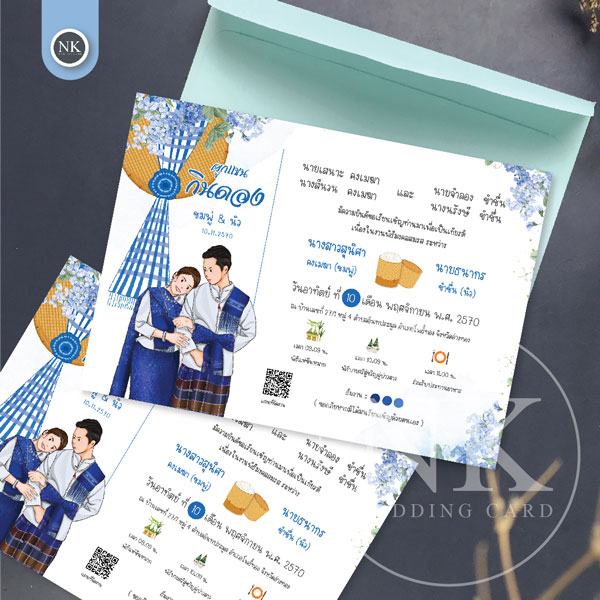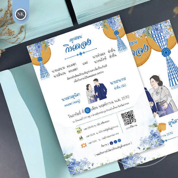 การ์ดเชิญงานกินดองดีไซน์เรียบหรู เหมาะสำหรับใช้ในงานแต่งงานหรือพิธีมงคล ตัวการ์ดออกแบบให้ดูสุภาพ เหมาะกับการเชิญแขกผู้ใหญ่และญาติผู้ใหญ่ในงานแต่ง