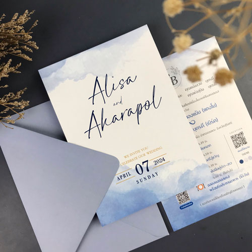 การ์ดแต่งงาน การ์ดงานแต่ง การ์ดแต่งงานมินิมอล การ์ดแต่งงาน สีฟ้า พร้อม ซองการ์ดแต่งงาน |