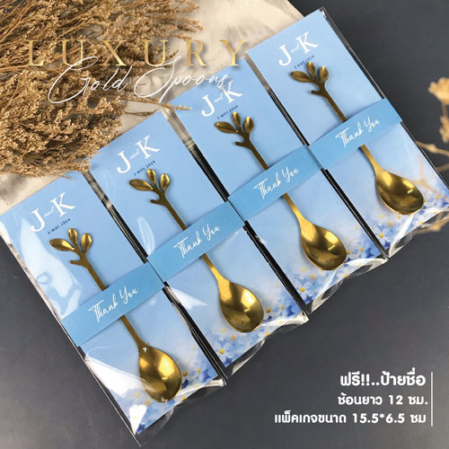 ของชําร่วย ช้อน ทอง ยาว 12 ซม. ขนาดป้าย 15.5 * 6.5 ซม. ฟรีป้ายชื่อ