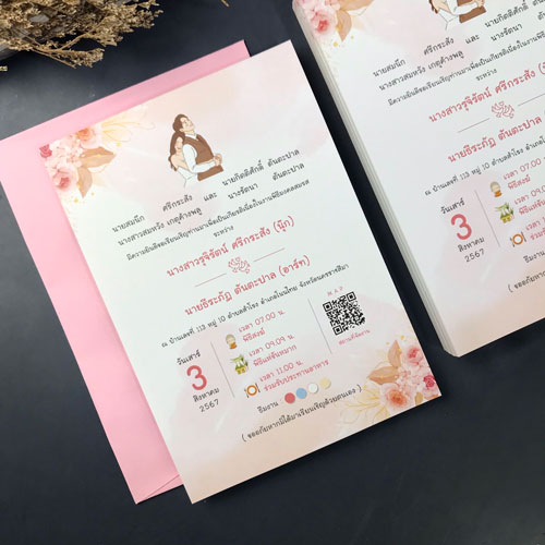 แบบการ์ดแต่งงาน การ์ดแต่งงานมินิมอล ดอกไม้ พร้อม ซองการ์ดแต่งงาน การ์ด แต่งงาน สีชมพู |