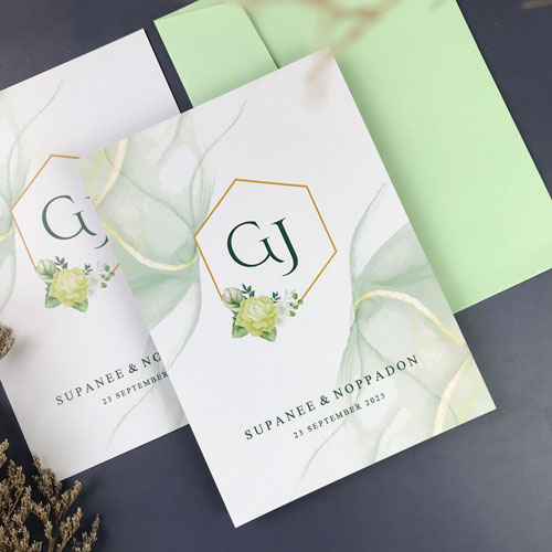 การ์ดแต่งงาน การ์ดงานแต่ง การ์ดแต่งงานมินิมอล การ์ดแต่งงาน สีเขียว พร้อม ซองการ์ดแต่งงาน