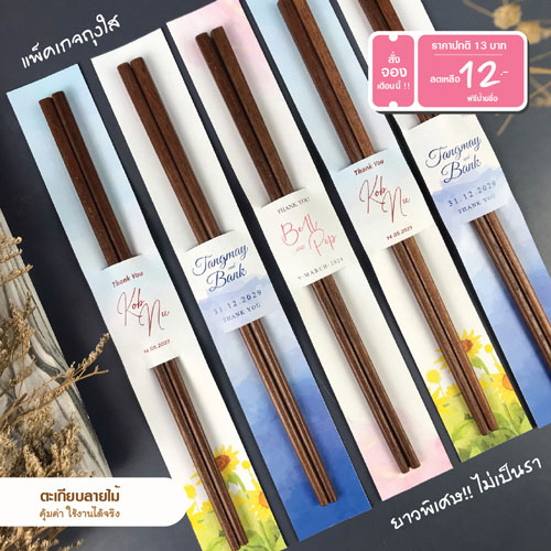 ตะเกียบ ไม้ ของ ชำร่วย ยาว 25 ซม. ไม่เป็นรา ฟรีป้ายชื่อ