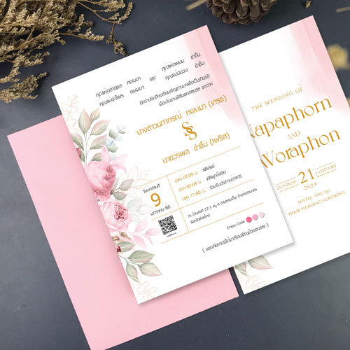 การ์ดแต่งงาน การ์ดงานแต่ง การ์ดแต่งงานมินิมอล การ์ดแต่งงาน สีชมพู พร้อม ซองการ์ดแต่งงาน |