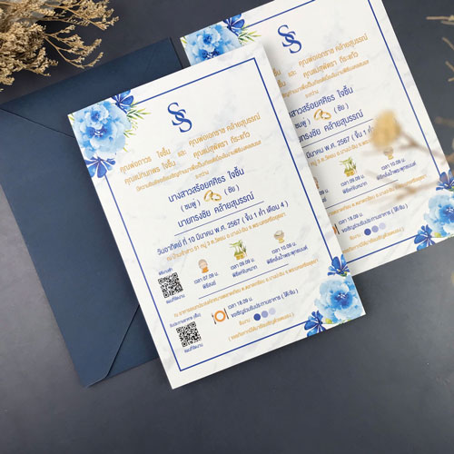 การ์ด แต่งงาน เรียบ หรู ดู แพง การ์ดแต่งงาน การ์ดงานแต่ง การ์ดแต่งงานมินิมอล การ์ดแต่งงาน สีฟ้า | A-035 - Gemotric