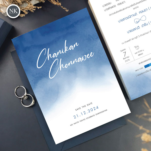 รายละเอียดสินค้า การ์ดแต่งงาน สีน้ำเงิน