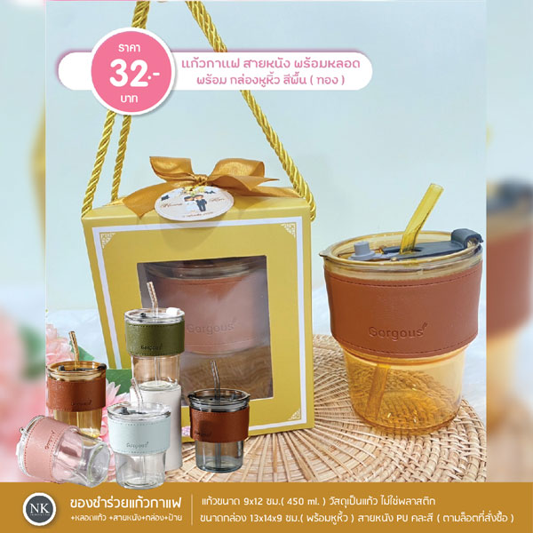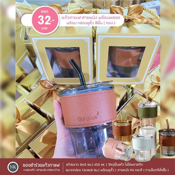 ของชำร่วยงานแต่ง แก้วน้ำพร้อมปอกหนัง
