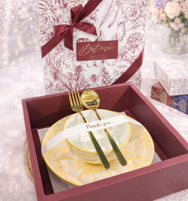 ของรับไหว้งานแต่งพร้อมกล่อง สไตล์ดอกไม้หรูหรา สีแดง พร้อมโบว์และป้ายชื่อ | NK26040605
