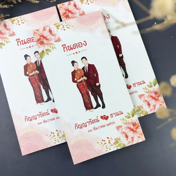 การ์ดแต่งงานสไตล์อีสาน “กินดอง” มาในดีไซน์มินิมอล เรียบง่าย แต่มีเอกลักษณ์ เหมาะสำหรับคู่บ่าวสาวที่อยากได้การ์ดแต่งงานโดดเด่นในธีมลูกทุ่งอีสาน โดยยังคงความทันสมัยและเข้ากับงานแต่งทุกสไตล์