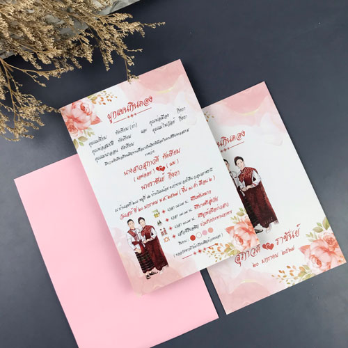 พิมพ์ด้วยระบบหมึกแท้คุณภาพสูง สีสันคมชัด ไม่ซีดง่าย พร้อมบริการออกแบบฟรีให้ตรงใจคุณ ลูกค้าสามารถเลือกความหนาและขนาดการ์ดได้ตามต้องการ และทุกชุดมาพร้อม ซองการ์ดแต่งงานสีพาสเทลเข้าชุด