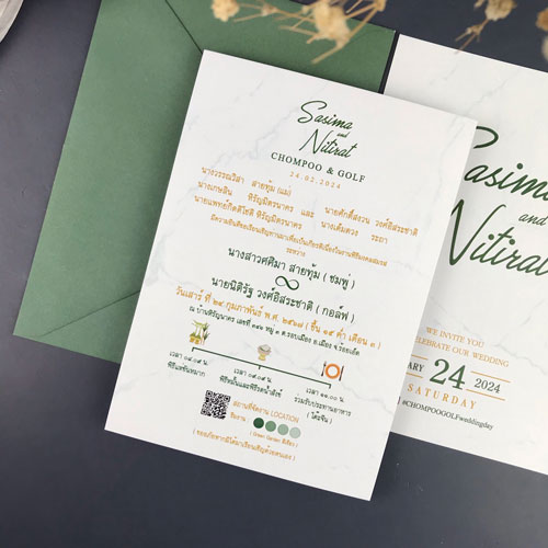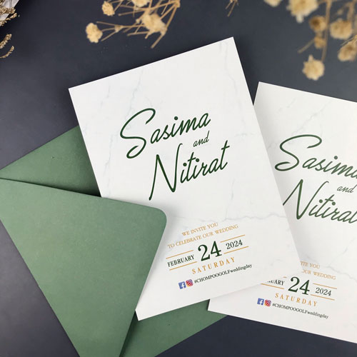 การ์ดแต่งงาน การ์ดงานแต่ง การ์ดแต่งงานมินิมอล การ์ดแต่งงาน สีเขียว พร้อม ซองการ์ดแต่งงาน