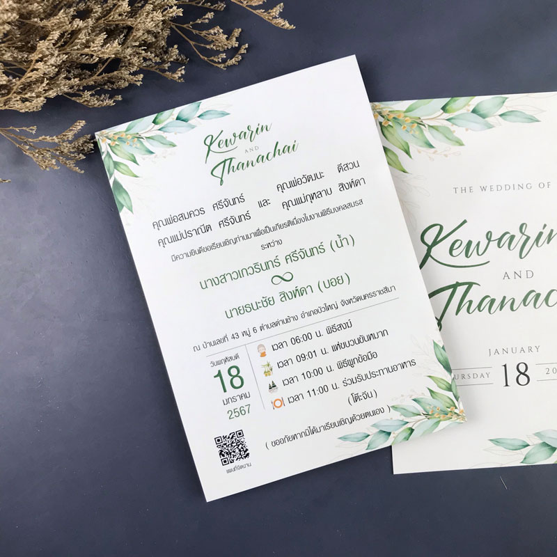 การ์ดแต่งงาน การ์ดงานแต่ง การ์ดแต่งงานมินิมอล การ์ดแต่งงาน สีเขียว พร้อม ซองการ์ดแต่งงาน