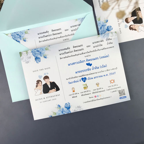 การ์ดแต่งงาน การ์ดงานแต่ง การ์ดแต่งงานมินิมอล การ์ดแต่งงาน สีฟ้า พร้อม ซองการ์ดแต่งงาน