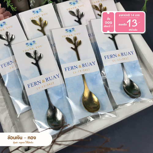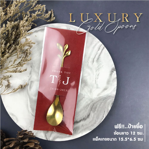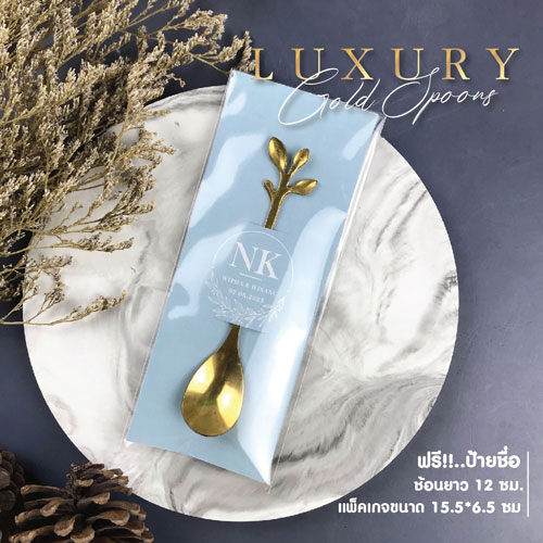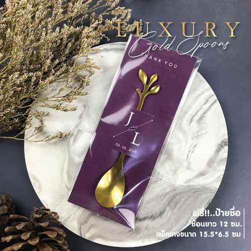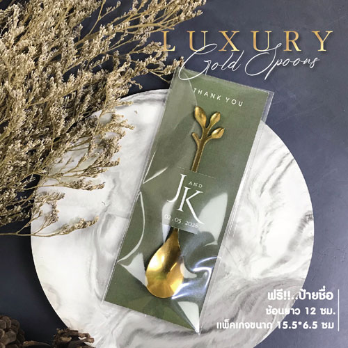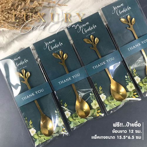 ของชําร่วย ช้อน ทอง ยาว 12 ซม. ขนาดป้าย 15.5 * 6.5 ซม. ฟรีป้ายชื่อ