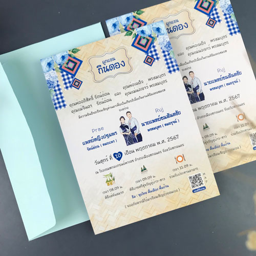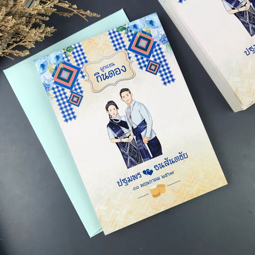 การ์ดแต่งงาน กินดอง อีสาน การ์ดงานแต่ง การ์ดแต่งงาน สีฟ้า พร้อม ซองการ์ดแต่งงาน