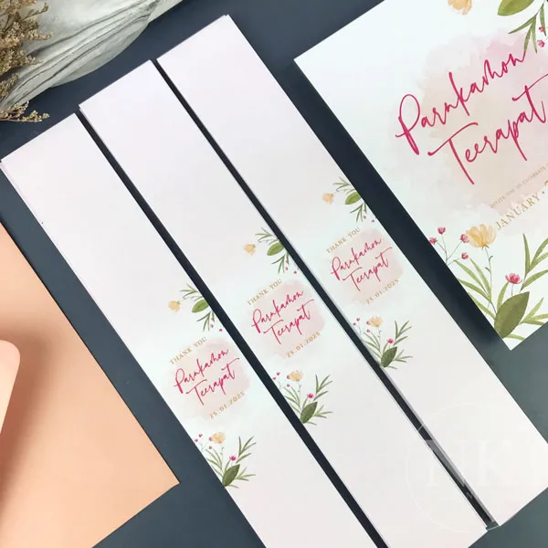 ตัวสายคาดสามารถช่วยเพิ่มความหรูหราให้กับแพ็คเกจ ไม่ว่าจะเป็นกล่องของชำร่วย ถุงของรับไหว้ หรือของขวัญต่างๆ โดยมีให้เลือกหลายขนาด A1 A2 A3 รองรับการใช้งานหลากหลายรูปแบบ อีกทั้งยังสามารถปรับข้อความ เช่น ชื่อบ่าวสาว วันที่ และคำขอบคุณได้ตามต้องการ