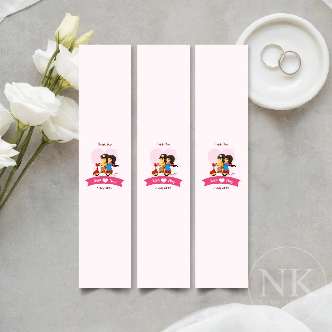 สายคาดของชำร่วยงานแต่ง ดีไซน์สวย คุณภาพพรีเมียม ผลิตจากกระดาษอาร์ตการ์ด 230 แกรม พิมพ์สีคมชัดด้วยหมึกกันน้ำ เหมาะสำหรับใช้เป็นป้ายคาดของรับไหว้ ของชำร่วยงานแต่ง งานหมั้น งานพิธีไทย และงานมงคลต่างๆ