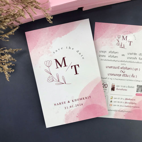 การ์ดแต่งงาน การ์ดงานแต่ง การ์ดแต่งงานมินิมอล การ์ด แต่งงาน สีชมพู พร้อม ซองการ์ดแต่งงาน