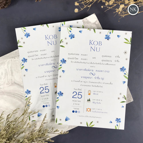 การ์ดแต่งงาน การ์ดงานแต่ง การ์ดแต่งงานมินิมอล การ์ดแต่งงาน สีฟ้า พร้อม ซองการ์ดแต่งงาน