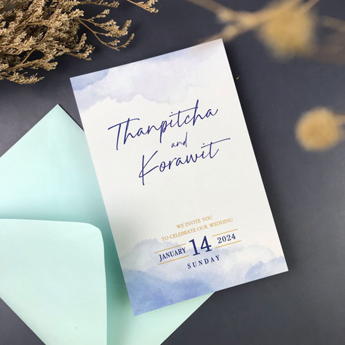 การ์ดแต่งงาน การ์ดงานแต่ง การ์ดแต่งงานมินิมอล การ์ดแต่งงาน สีฟ้า สีน้ำเงิน พร้อม ซองการ์ดแต่งงาน