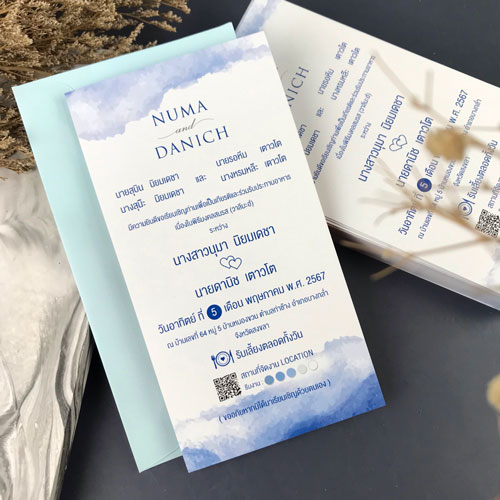 การ์ดแต่งงาน การ์ดงานแต่ง การ์ดแต่งงานมินิมอล การ์ดแต่งงาน สีฟ้า สีน้ำเงิน พร้อม ซองการ์ดแต่งงาน