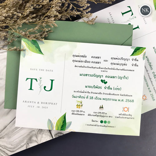 การ์ดแต่งงาน การ์ดงานแต่ง การ์ดแต่งงานมินิมอล การ์ดแต่งงานสีเขียว การ์ดพิมพ์หน้าเดียว