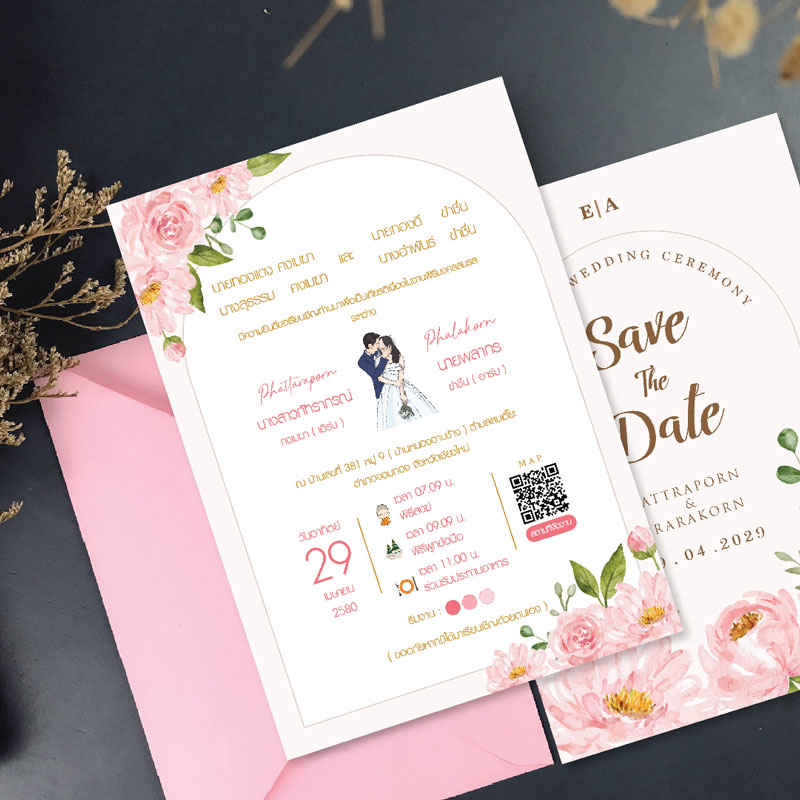 การ์ดแต่งงาน การ์ดงานแต่ง การ์ดแต่งงานมินิมอล การ์ดแต่งงาน สีชมพู พร้อม ซองการ์ดแต่งงาน - A-263