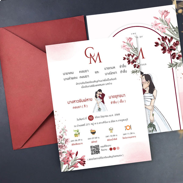 รายละเอียดสินค้า การ์ดแต่งงาน สีแดง