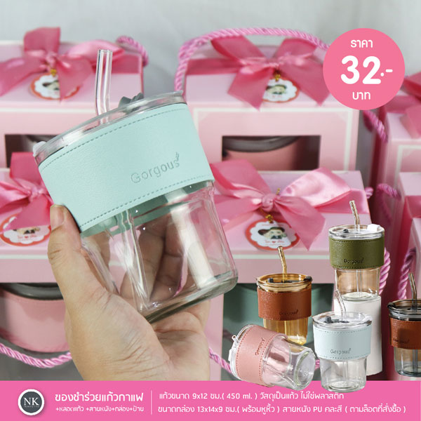 ของชำร่วยงานแต่ง แก้วน้ำพร้อมปอกหนัง