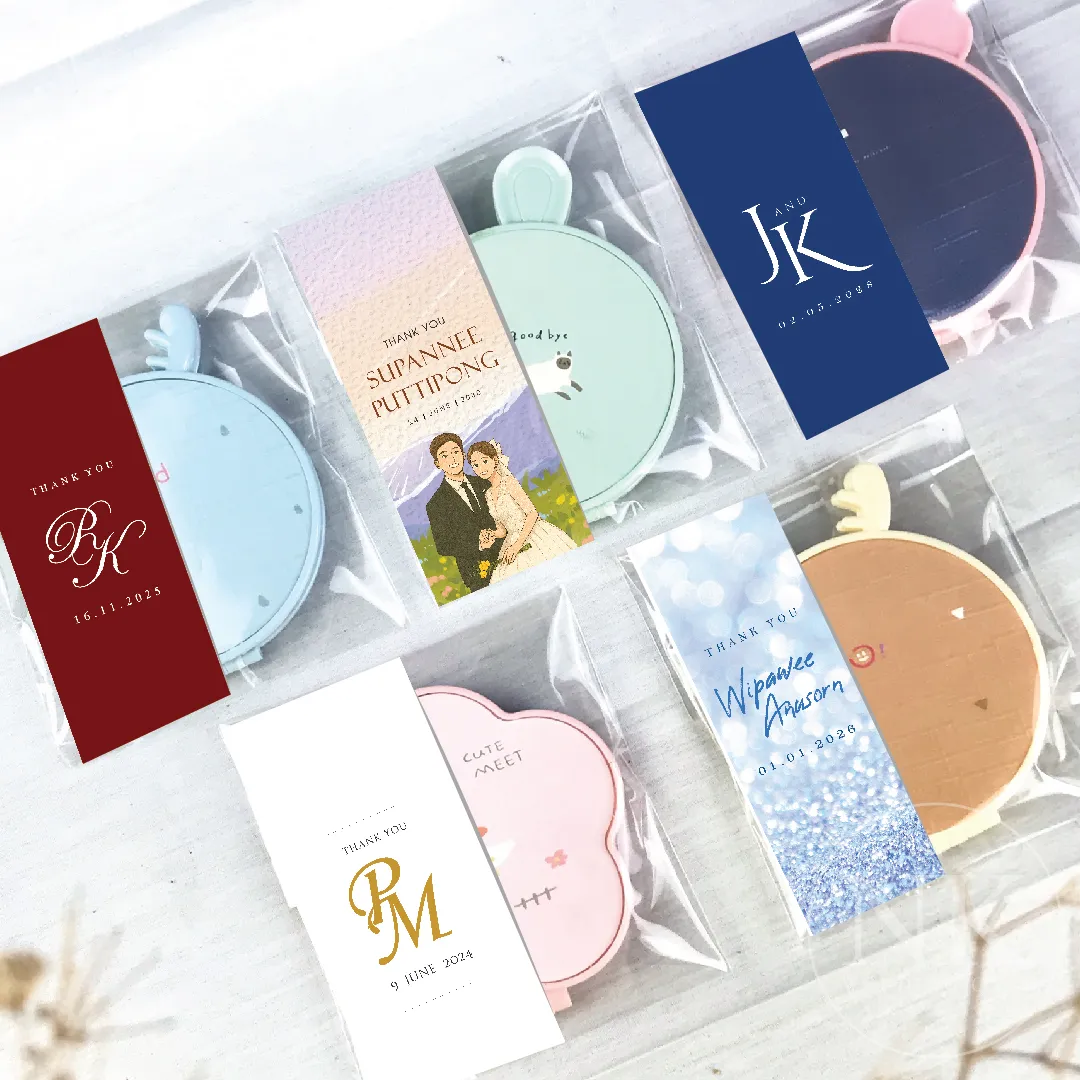 ตัวกระจกขนาดกะทัดรัด พกพาสะดวก สามารถใช้งานได้จริงในชีวิตประจำวัน ไม่ว่าจะพกใส่กระเป๋า หรือใช้เติมความมั่นใจระหว่างวัน ถือเป็นของชำร่วยที่ทั้งสวยและมีประโยชน์