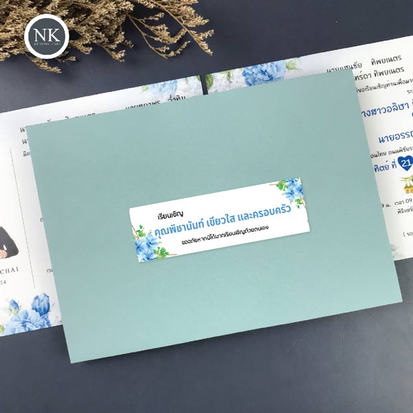 พิมพ์สติกเกอร์หน้าซอง สติกเกอร์ซองงานแต่ง สติกเกอร์พิมพ์ชื่อแขก