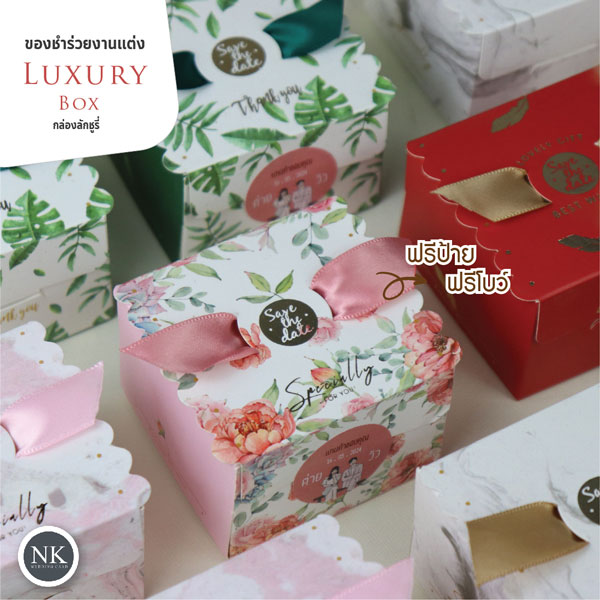 กล่องของชำร่วยงานแต่งดีไซน์ Luxury Box ทรงสวย พร้อมโบว์ตกแต่ง เหมาะสำหรับใส่ของชำร่วยงานแต่งดีไซน์มินิมอล เรียบหรู เพิ่มความประทับใจให้แขกในวันสำคัญ